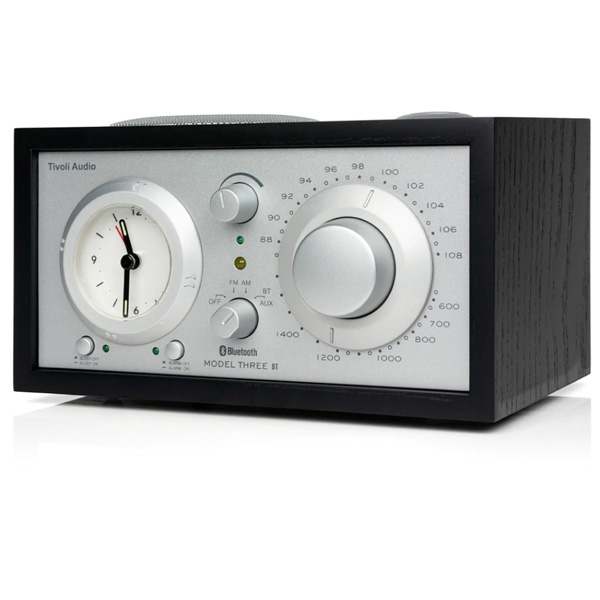 Внешнюю антенну Model Three BT можно отключить и принимать станции на внутреннюю. В приемнике имеются вход для внешнего источника сигнала, а также Bluetooth для удобного соединения с мобильными устройствами. Также предусмотрены выходы на наушники и записывающее устройство (оба – стереофонические) и на сабвуфер. Еще один дополнительный вход позволяет смикшировать сигнал с подключенного к нему источника и самого радиоприемника. Также Tivoli Model Three BT оснащен разъемом USB для зарядки аккумуляторов совместимых гаджетов...