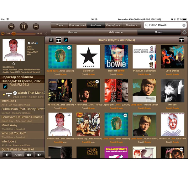A200 способен работать в роли предусилителя: его с легкостью можно подключить напрямую к усилителю мощности или активной аудиосистеме. Громкость регулируется из приложения AurenderConductor, доступного в версиях для iPad, iPhone и устройств на ОС Android. На входящем в комплект пульте ДУ, выточенном из цельного куска алюминия, есть клавиши для регулировки громкости, отключения звука, выбора входа и выхода, запуска либо остановки воспроизведения и других важных функций, ради которых не придется использовать смартфон или планшет. Управлять громкостью и воспроизведением, а также выбирать плейлисты можно и с фронтальной панели самого устройства. Если же в вашей системе уже есть качественный предусилитель, регулируемый выход можно сделать фиксированным и передать функцию регулировки громкости внешнему устройству.