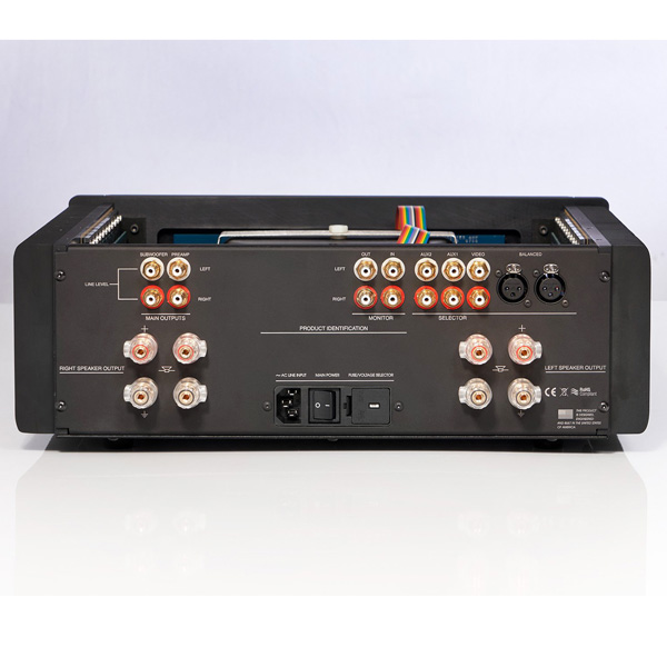В выходных каскадах усилителя установлено по 18 высокочастотных (до 30 МГц) транзисторов, а также используется фирменная технология Precision Bias, автоматически устанавливающая оптимальный режим работы оконечников в зависимости от сопротивления нагрузки, и других факторов. Аппарат оснащен 2000 ваттным сетевым трансформатором, и фильтрующими конденсаторами общей емкостью 80000 мкФ.На «первых» 5 ваттах выходной мощности усилитель работает в классе А, что позволяет получить исключительно высокое качество звука при прослушивании на небольшой громкости.