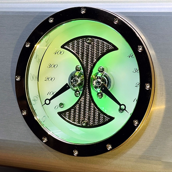 Дизайн расположенного на фронтальной панели Progression S350 стрелочного указателя выходной мощности вдохновлен элегантными циферблатами классических швейцарских часов. Быстродействующая баллистическая схема повышает скорость отклика стрелочного указателя. В обновленном дизайне указателя улучшена читаемость показаний читаемость во всем диапазоне выходной мощности усилителя. Взятый непосредственно из моноусилителя Relentless, каждый радиатор изготовлен из 22-килограммовой алюминиевой заготовки.