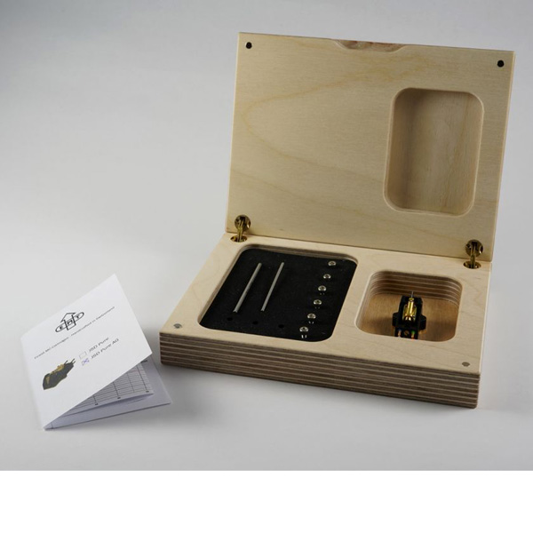 JSD Pure Black представлен в красивом олдскульном футляре, пахнущем сандаловым деревом, с верхней пластиной из шлифованного алюминия. Сам картридж находится в небольшой выдвижной деревянной вставке с правой стороны футляра. В комплекте полный комплект для монтажа, небольшое руководство (своего рода) и график частотной характеристики вашего картриджа (он ровный до 10 кГц и поднимается примерно до +8 дБ на 20 кГц, с разницей в доли децибела между каналами… впечатляет!). Требуется определённая осторожность и внимание, поскольку это голый стилус без защитной пластины, но в остальном установка проста.