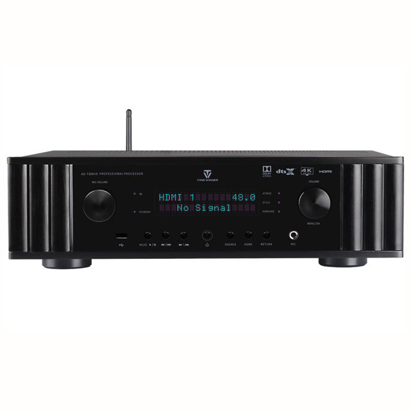 Компания Tone Winner нашла свою нишу на этом рынке AV процессоров, предложив по весьма привлекательным ценам целый ряд кинотеатральных процессоров с развитыми функциональными возможностями. AD-7300HD - одна из последних моделей в этом ряду, созданная с учётом современных спецификаций видео 4K/HDR и объектно-ориентированных форматов 3D-звучания Dolby Atmos и DTS:X. Аппарат может обслуживать большое количество двухканальных и AV-источников, вдобавок имеет богатый арсенал технических средств для караоке (микрофоны в комплект не входят). На текущий момент это самая дорогая модель в ряду процессоров Tone Winner, но даже в таком статусе она не дороже своих аналогов от именитых аудиобрендов.