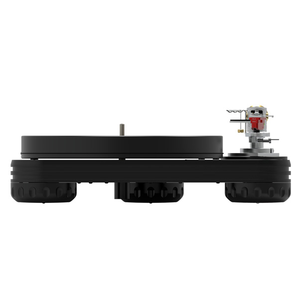 В ходе разработки проигрывателей поколения Neo мы также нашли оптимальное сочетание связанных слоев для шасси проигрывателя, в котором слой бронзового сплава связывает два слоя алюминиевых сплавов. Новый материал шасси подтолкнул к изменениям в конструкции опорного диска: а именно, оптимизации расположения, диаметра и массы цилиндрических виброглушителей по его периметру. Используя расчет по методу конечных элементов, мы получили уникально жесткий корпус, но с высоким демпфированием колебаний.