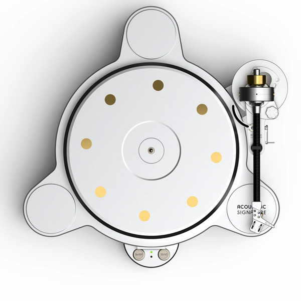 Виброгасители в опорном диске (Silencer Technology). Еще в 2000 году Acoustic Signature изобрела и внедрила новую систему гашения вибраций главного (на который кладется пластинка) диска проигрывателя. Система вставок (виброглушителей) действует просто и чрезвычайно эффективно.