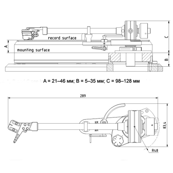Вертикальный угол захода иглы регулируется подъемом или опусканием поворотной ножки тонарма, которая фиксируется во втулке винтом. Компенсатор скатывающей силы имеет градуированный верньер для пользовательской настройки. Для плавного подъема/опускания тонарма на пластинку пользуйтесь микролифтом.