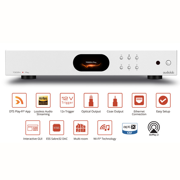 Обеспечивая беспроводную потоковую передачу звука высокого разрешения на любую домашнюю аудиосистему, 7000N Play еще больше расширяет многоформатную, многоплатформенную, совместимую с несколькими источниками систему DTS Play-Fi, теперь с совместимостью Apple AirPlay 2.