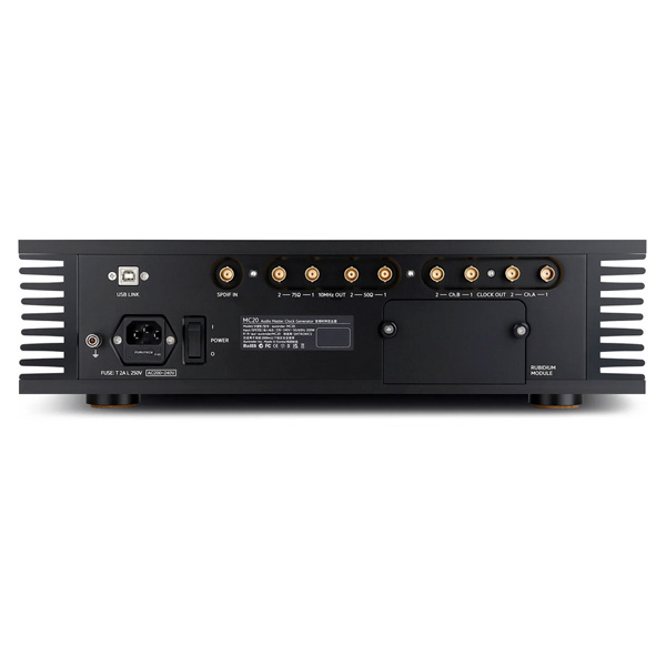 Рубидиевый тактовый модуль, используемый в MC20, представляет собой исключительно стабильную и точную конструкцию, обеспечивающую новый низкий уровень фазового шума и джиттера. Его безупречная производительность обеспечивает новый уровень яркой четкости с трехмерной шириной, глубиной и высотой звукового поля, которое он создает. Уменьшение джиттера и фазового шума устраняет любые следы «цифровых бликов» и вместо этого придает аналоговую теплоту и натурализм любому цифровому источнику звука.