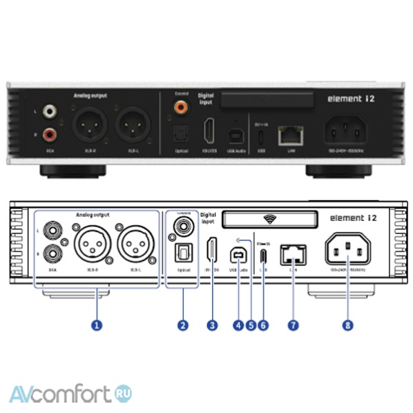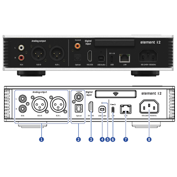 Element i2 способен проигрывать музыку с вашего мобильного телефона или планшета, используя беспроводное Wi-Fi соединение. Сетевые возможности устройства задействуются при использовании Wi-Fi или стандартного подключения Ethernet кабелем. Плюс аппарат поддерживает протоколы DLNA и Airplay. Matrix Element i2 также может быть использован в связке с платформой Roon.