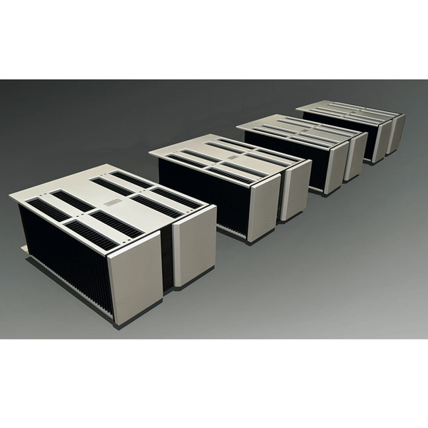 В этой конструкции первым делом нужно было отделить все возможные источники шума от самого усилителя. Для этого мы поместили блок питания, а также всю логику и элементы управления процессором в отдельное шасси. Чтобы избежать ограничений пиковых токов между блоком питания и усилителем, у нас были специальные кабели, созданные корпорацией Virgina Panel.