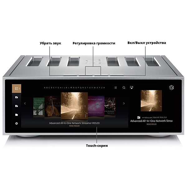 Информация взята с сайта avcomfort.ru В элегантном дизайнерском корпусе ROSE RS520 объединены главные модули из двух флагманских устройств: стримера RS150B и усилителя RA180. Интернет и сетевой проигрыватель отвечает за все возможные подключения цифровых источников музыки (и видео), а уникальный усилитель на новейших нитрид-галлиевых транзисторах обеспечивает запас мощности и совместимость с самыми разными акустическими системами (250 Вт на канал). Передовая схема усилителя опережает конкурентов на многие годы вперед, а цифровая сетевая часть легко модернизируется через автоматические обновления. Функциональное оснащение RS520 постоянно совершенствуется, наращивается и идет в ногу с самыми новыми тенденциями цифровой музыки высокого разрешения.