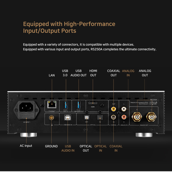 От варианта RS250 версия RS250A отличается только схемой блока цифро-аналогового преобразования. В отличие от базовой платформы в RS250A применены новый ЦАП ESS ES9028 Pro, новый тактовый генератор с фемтосекундной точностью, новый интегральный стабилизатор питания аудиокодека на чипе ESS ES9311Q. По-другому реализован и преобразователь ток—напряжение на выходе ЦАПа: на 10 дискретных ОУ разработки Hi-Fi ROSE.