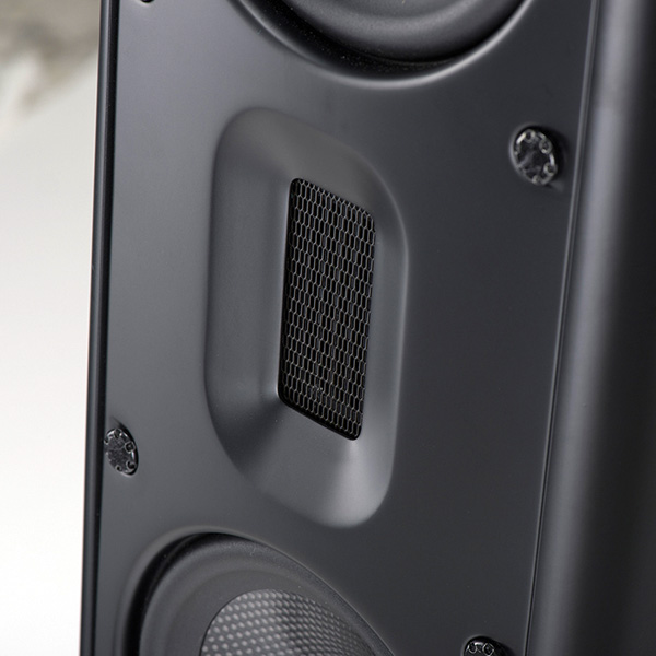 Внутренняя конструкция корпуса обеспечивает оптимизированный воздушный поток, что в сочетании с минималистичным использованием демпфирующего материала обеспечивает очень динамичное и линейное воспроизведение низких частот. Кабинет с фазоинвертором настроен на оптимальную импульсную характеристику, что обеспечивает линейное, динамичное и детальное воспроизведение низких частот, одновременно делая размещение акустики в помещении очень простым и универсальным.