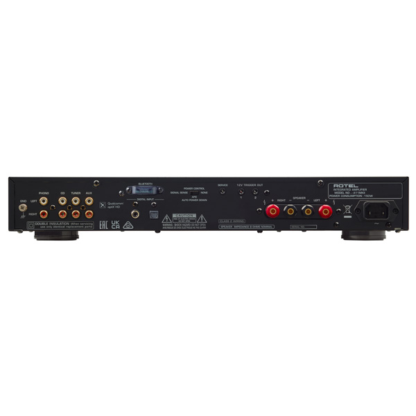 Для акустических систем имеются винтовые клеммы на задней панели. Активируемый пользователем сенсор наличия аудио сигнала автоматически включает усилитель при его появлении. Два 12-В триггерных выхода позволяют дистанционно управлять включением остальных компонентов вашей аудио системы...