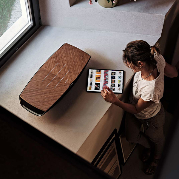 Вариантов отделки два: традиционный Walnut (Орех) и индустриальный Graphite (Графит). Верхняя панель колонки имеет подсветку и выполнена по технологии Senso – она представляет собой сенсорный интерфейс управления; дополнительно предусмотрен традиционный ручной переключатель, кроме того, управлять системой можно через мобильное приложение, установленное на смартфоне или планшете. Подсветка «сообщает» пользователю о том, в каком режиме работает колонка, какой стриминговый сервис используется и какой вход для подключения задействован...