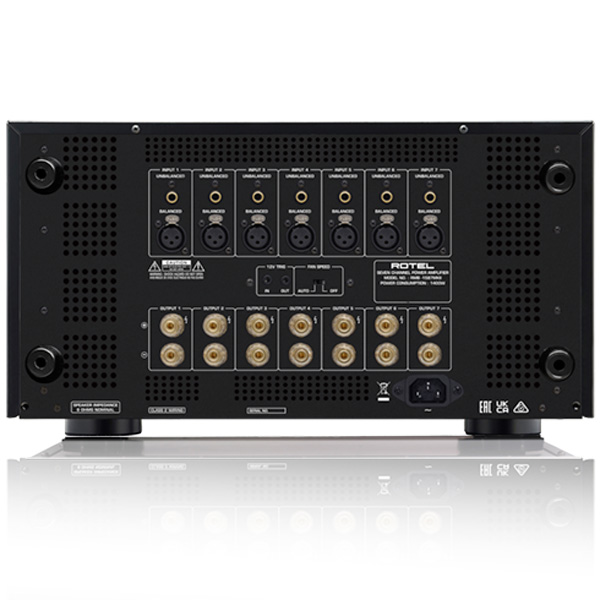 В отличие от других многоканальных усилителей, выходная мощность которых падает при одновременной работе всех каналов, RMB-1587MKII выдает в классе AB на все 7 каналов по 155 Вт при нагрузке 8 Ом и по 250 Вт на 4 Ом при всех активных каналах...