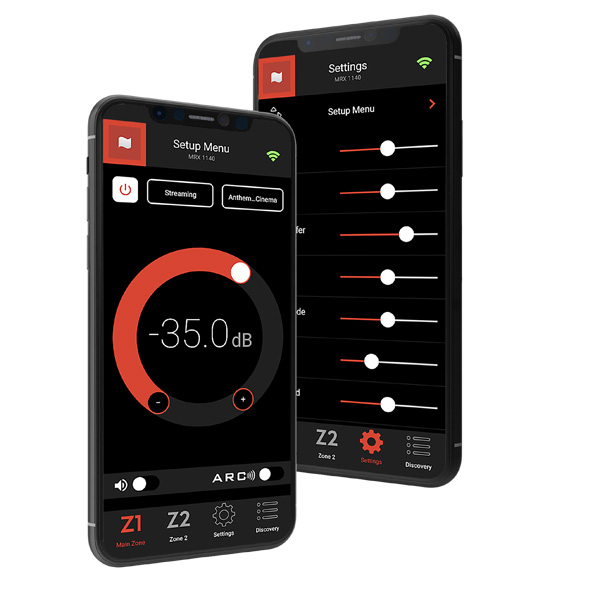 Приложение Anthem Remote использует соединение Wi-Fi, чтобы упростить настройку поддерживаемых устройств Anthem. Элементы управления на основе приложения включают уровень громкости, отключение звука, выбор входа, режимы прослушивания, низкие и высокие частоты, регулировку уровня, навигацию по меню и управление Anthem Room Correction (ARC).