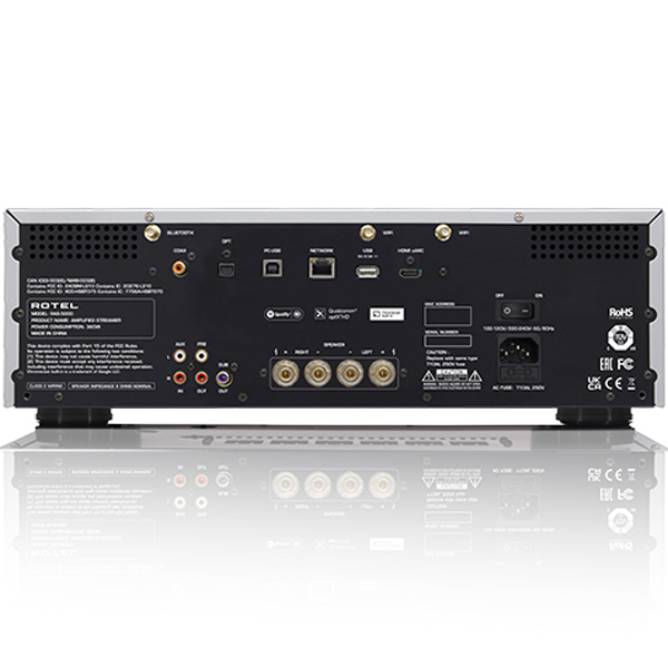 Как классический усилитель Rotel, RAS-5000 обладает широким выбором функций. В дополнение к входу HDMI ARC у него имеется широкий спектр традиционных входных разъемов, включая аналоговый на RCA, цифровой коаксиальный, оптический, PC-USB, а также беспроводной канал Bluetooth с aptX HD.