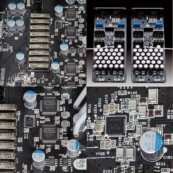 В каждом канале ЦАП используются по две микросхемы ES9038PRO, всего в устройстве их четыре. Несравненно мощный выходной ток 120 мА каждого канала является важным элементом дискретного ЦАП, не поддерживающего NFB. В одном резисторе преобразования тока в напряжение используются резисторы из фольги без покрытия для преобразования выходного тока в напряжение непосредственно перед первым каскадом схемы Type-R.