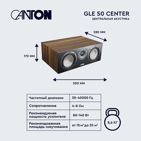 Акустическая система центрального канала GLE 50 всегда в центре внимания: оснащённая двумя титановыми среднечастотными динамиками диаметром 154 мм в закрытом корпусе, она всегда работает точно и динамично, благодаря поддержке 25-мм твитера с алюминиево-марганцевым куполом идеально подходящего для оптимизации звуковой картины вашей системы домашнего кинотеатра в классической гостиной. Выдающееся техническое оснащение гарантирует удовольствие от прослушивания.