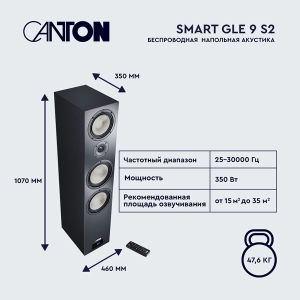 Информация взята с сайта avcomfort.ru Активные беспроводные напольные акустические системы Canton Smart GLE 9 S2.