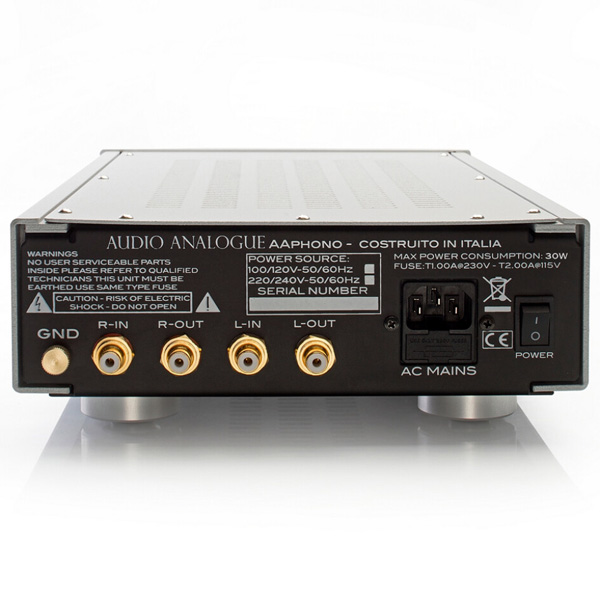 Audio Analogue AAphono очень универсален и прост в использовании. Для картриджей MM можно насторить входную емкость и сопротивление, а для картриджей MC - входное сопротивление, просто нажав соответствующие кнопки, расположенные под лицевой панелью. Выбранная конфигурация и настройки остаются неизменными при выключении фонокорректора или отключении от сети...