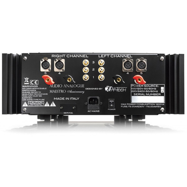 Благодаря столь изысканной схемотехнике, а также выбору компонентов высочайшего уровня (резисторы военного стандарта, полипропиленовые конденсаторы аудиокласса, изготовленные по индивидуальному заказу для AIRTECH, внутренняя проводка с медью 7N OCC и выходными разъемами из чистой меди) удалось создать усилитель, обладающий честью быть наследником славного Maestro Integrated и поэтому полностью присоединяется к линейке Anniversary, отмечающей одновременно первые 20 лет Audio Analogue, а также 15-летие выпуском первого продукта Audio Analogue, носящего имя Maestro.