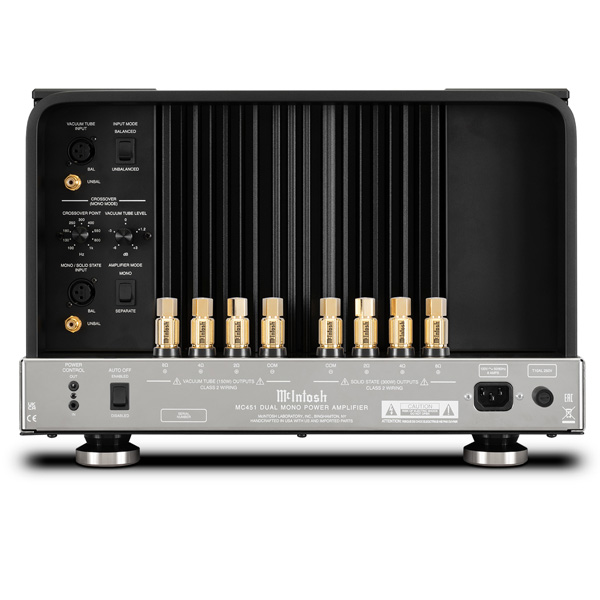 - Разработанный для громкоговорителей с двухполосным усилением, MC451 состоит из лампового усилителя мощностью 150 Вт и полупроводникового усилителя мощностью 300 Вт.