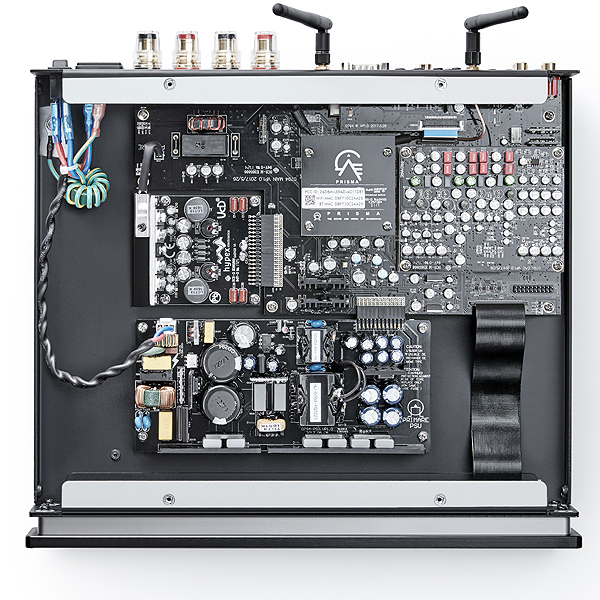 В секции усиления используется ведущий в своем классе выходной каскад Hypex, обеспечивающий мощность 60 Вт при нагрузке 8 Ом и 100 Вт при нагрузке 4 Ом для потрясающего драйва и управления практически любым громкоговорителем, что полностью противоречит компактным размерам усилителя. Секция цифро-аналогового преобразования не менее впечатляет: она способна обрабатывать музыкальные файлы с разрешением до PCM 384 кГц и возможностями DSD 256.