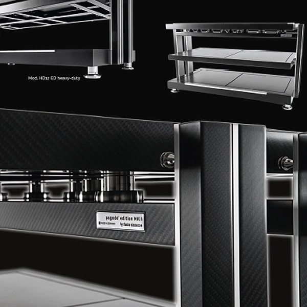Германская компания выпустила новое поколение стоек Pagoda Signature – Mk II. Как и прежде, они выполнены в классическом дизайне с профилем из алюминия и полками из канадского клена, оснащены фирменными шипами.