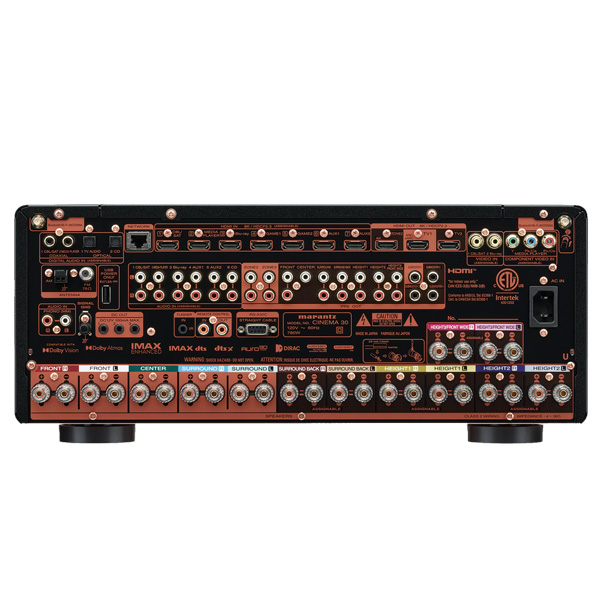 Cinema 30 основан на блоке из симметричных мощников (они смонтированы на отдельной плате, расположенной напротив блока питания, чтобы минимизировать уровень искажений). Всего в устройстве 11 каналов по 140 Вт каждый, что идеально подходит для домашнего кинотеатра с системой Dolby Atmos 7.1.2. В режиме предварительного усиления доступна 13.4-канальная схема. Схемотехника Marantz HDAM SA-2 обеспечиваяет дополнительную «музыкальность», характерную для всей линейки продуктов бренда.