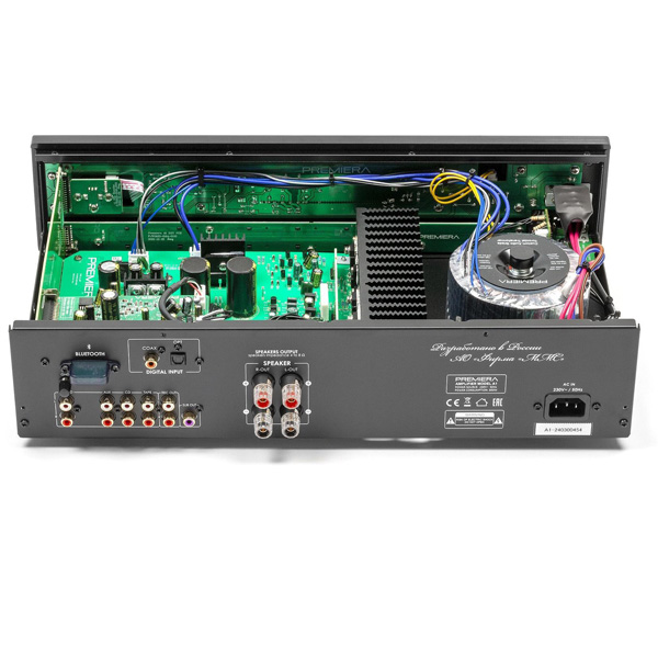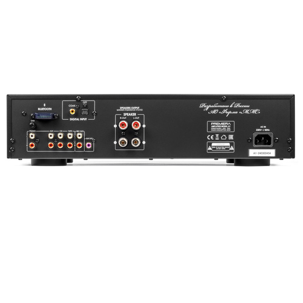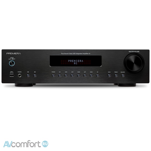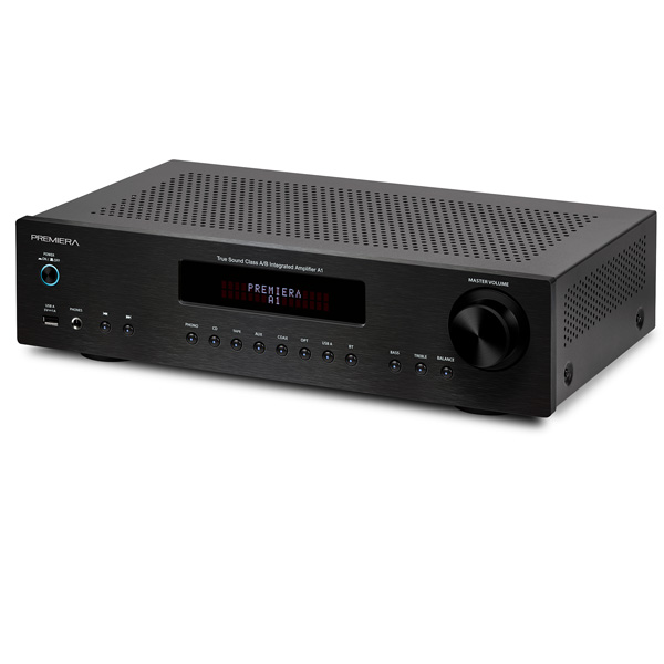 Premiera A1 современный интегральный Hi-Fi стереоусилитель класса AB со встроенным ММ-фонокорректором, ЦАП и модулем Bluetooth 5.0, с номинальной выходной мощностью 51 Вт на канал.