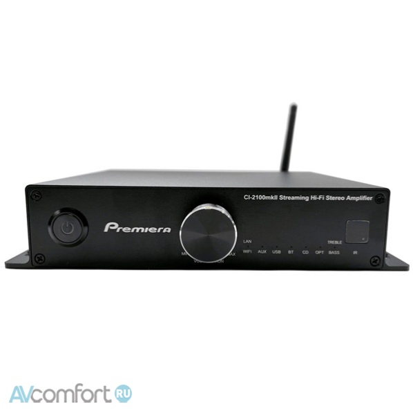 Premiera CI-2100mkII – стриминговый стерео усилитель с поддержкой Wi-Fi, Ethernet и BT 5 – является современным универсальным воспроизводящим устройством. CI-2100mkII дает возможность слушать музыку высокого качества с внешних источников (например, с LP-проигрывателя), со смартфона, NAS-сервера и таких потоковых сервисов, как Qobuz, Tidal, Napster, Deezer, Spotify, TuneIn с помощью специального приложения или с помощью AirPlay2, Bluetooth, LinkPlay и пр.