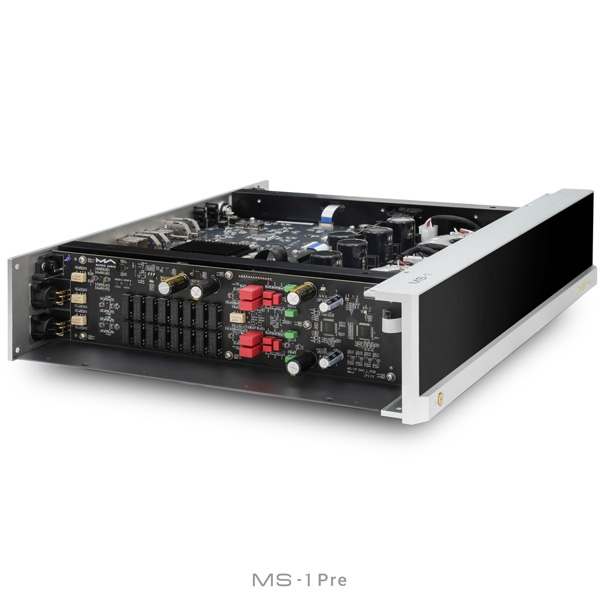 Регулятор громкости является одним из важнейших элементов конструкции, влияющих на качество звука. Плавное ослабление сигнала и стабильный уровень между каналами — необходимое условие хорошего звука. Модель MS-1 Pre имеет встроенный предусилитель, который использует регулятор громкости с делителем напряжения на массиве резисторов. Четыре высококачественных блока, образующие регулятор громкости, выполнены на 64 прецизионных резисторах точностью до 0,001 и 32 герметичных герконовых реле с быстрым микроконтроллерным переключением. Такой метод управления не только минимизирует влияние на качество звука, но и обеспечивает идеальную согласованность между обоими каналами. Шум от работы герконовых реле практически не слышен даже во время непрерывного изменения громкости.