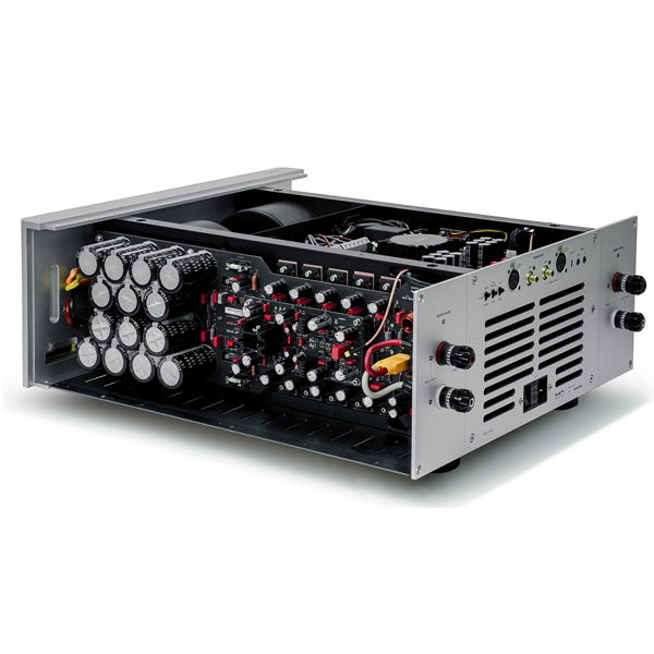Независимые трансформаторы для левого и правого каналов обеспечивают полностью независимую двухканальную конструкцию с общей мощностью 1250 ВА. Основное питание составляет ±80 В. Каждый канал оснащен 14 параллельно соединенными конденсаторами емкостью 6800 мкФ, образующими матрицу фильтрующих конденсаторов основного источника питания. Суммарная емкость конденсаторов обоих каналов достигает 190 000 мкФ. По сравнению с одним конденсатором одинаковой емкости, несколько конденсаторов, подключенных параллельно, имеют меньшее эквивалентное внутреннее сопротивление, обеспечивая большую гибкость при работе с большими выходными токами.
