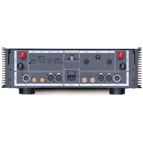 Благодаря 4 цифровым входам (SPDIF, AES/EBU, Network, USB) обеспечивается подключение к широкому выбору цифровых источников. Мощный DSP преобразует все входящие цифровые музыкальные сигналы в формат DXD, выполняет обработку ZeroPhase и регулировку громкости LEEDH. По одному чипу PCM1792 в монофонической конфигурации на канал обеспечивают цифро-аналоговое преобразование музыкальных сигналов. Для достижения оптимальных результатов внутренняя цифровая фильтрация чипа обходится. Фильтр пассивной реконструкции оснащен изготовленными по индивидуальному заказу высокоточными компонентами, обеспечивающими стабильные характеристики фильтра, что является предпосылкой для идеальной компенсации с помощью технологии ZeroPhase.