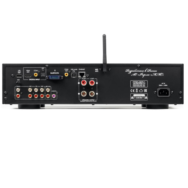Premiera A1S - разработанный в России высококачественный интегральный Hi-Fi стереоусилитель класса AB со встроенными сетевым проигрывателем, ММ -фонокорректором, ЦАП, Bluetooth aptX, HDMI ARC, Wi-Fi и AirPlay 2 и с номинальной выходной мощностью 51 Вт на канал (8 Ом) предназначен для использования в профессиональных и домашних стереосистемах. Широкие функциональные возможности делают усилитель универсальным, а благодаря разнообразию подключений его можно использовать почти с любыми источниками для воспроизведения – как аналоговыми, так и цифровыми.