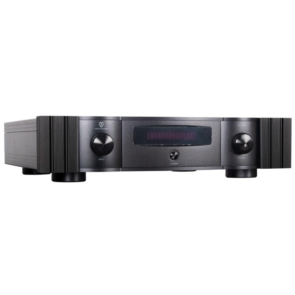 Эргономика предусилителя предельно проста: слева ручка коммутатора входов, а справа — регулятора громкости. В центре светится матричный люминесцентный дисплей с крупными голубыми символами. Все регулировки также доступны с алюминиевого пульта ДУ, увесистого и удобного.