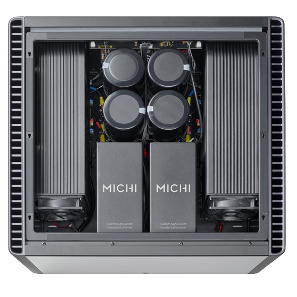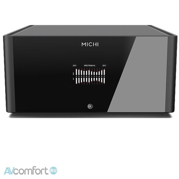 Информация взята с сайта avcomfort.ru Лучший в своем классе по качеству звука стерео усилитель мощности Michi S5 выдает в классе AB 500 Вт на канал на нагрузку 8 Ом и более 800 Вт на 4 Ом. Архитектура типа «двойное моно» оборудована двумя заказными тороидальными трансформаторами с большим запасом мощности (2200 ВА), изготовленными на собственной фабрике, упакованными в индивидуальные корпуса, заполненные эпоксидным составом – для устранения шумов и вибраций. Банк из 4-х патентованных британских накопительных конденсаторов общей емкостью 188,000мкФ обеспечивают исключительную басовую энергию, поддерживая при этом высокую точность тонких деталей и контроль 32 выходных транзисторов, выдающих большие токи. Все это без особых усилий гарантирует ритмическую точность и синхронизм даже при самых трудных нагрузках.