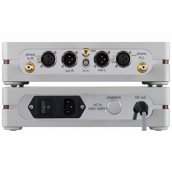 Этот усиленный сигнал затем поступает на специально разработанный основной фонокорректор RIAA по сигнальному пути, свободному от обычных реле и соединительных конденсаторов, что снова обеспечивает более чистый и точный звук. Затем сигнал выравнивается и подается на сбалансированные выходы XLR. В результате соотношение сигнал/шум значительно улучшается, почти совпадая с улучшением на десять децибел абсолютного фонокорректора, установленного на головке.
