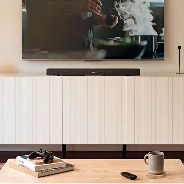 Полнодиапазонный звук. Благодаря двум встроенным сабвуферам с направленными вниз динамиками, двойным среднечастотным и высокочастотным динамикам вы сможете наслаждаться потрясающим фирменным звуком Denon.