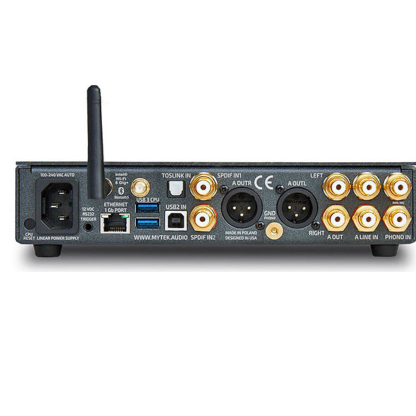 С точки зрения чистого аудио, стоит упомянуть о встроенном «референсном» (по словам Mytek) усилителе для наушников, использующем принцип «сильный ток, высокий переходный процесс», с несимметричным и симметричным выходом. В системе предусмотрен регулятор громкости, работающий, на выбор, в аналоговом либо цифровом (с шагом 1 дБ) режиме.
