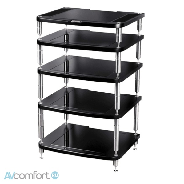 Информация взята с сайта avcomfort.ru Полка: МДФ высокой плотности, толщина полки 30 мм. Обработка поверхности черной эмалью итальянской фирмы Sayerlack. Платформа под компонент: 450х450 мм, стекло триплекс 8 мм, платформа обеспечивает дополнительную развязку через специальные демпфирующие элементы. Опоры: цельнолитые, из высокопрочной нержавеющей стали 304-й марки. Шипы: регулируемые по горизонту.