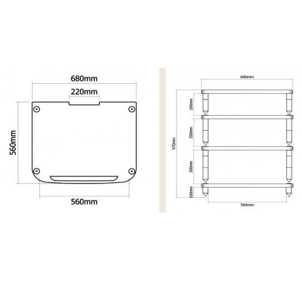 Информация взята с сайта avcomfort.ru Полка: МДФ высокой плотности, толщина полки 30 мм. Декорирована кожей с декоративной отстрочкой. Платформы под компонент на каждой полке: 450x450 мм, стекло триплекс 8 мм, платформы обеспечивают дополнительную развязку через специальные демпфирующие элементы. Опоры: цельнолитые, из высокопрочной нержавеющей стали 304-й марки. Шипы: регулируемые по горизонту.