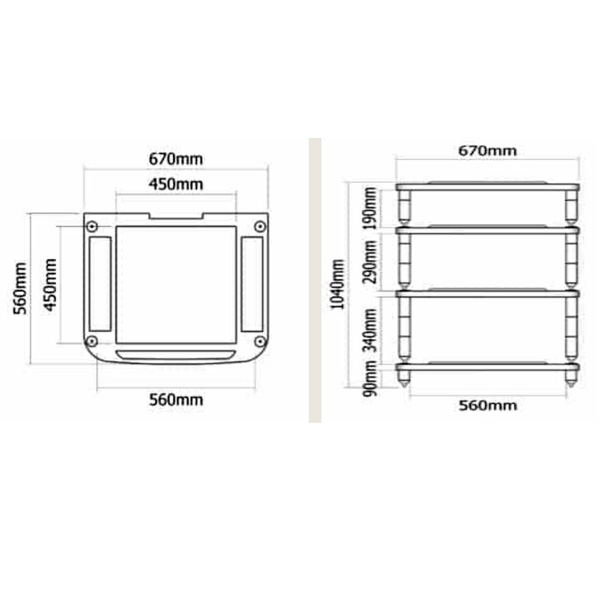 Габариты, мм | 50 х 670 х 560 |