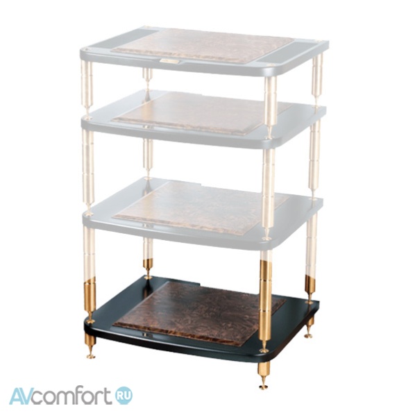 Информация взята с сайта avcomfort.ru Полка: МДФ высокой плотности, толщина полки 30 мм. Обработка торца полки эмалью итальянской фирмы Sayerlack. Платформы под компонент на каждой полке: 450х450 мм, плита МДФ с отделкой дорогим шпоном прикорневого среза ореха, платформы обеспечивают дополнительную развязку через специальные демпфирующие элементы. Опоры: цельнолитые, из высокопрочной нержавеющей стали 304-й марки, напыление нитрид титана создает благородный цвет золота.