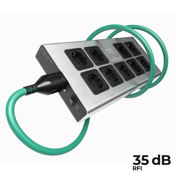 С точки зрения высококачественного звука, для электросети необходимы два фактора: хорошая синусоида 50 или 60 Гц, подаваемая от источника с очень низким импедансом, без радиочастотного шума. Низкий импеданс обеспечивает почти постоянное напряжение независимо от того, сколько энергии используется в окружающей среде. В действительности мы обычно можем ожидать около 5% колебаний. Очень низкое сопротивление сети, которое намного ниже 1 Ом при 50 или 60 Гц, не сохраняется при приближении к радиочастотам (> 50 Ом > 100 кГц) и действует как антенна, привлекающая радиочастотный шум.