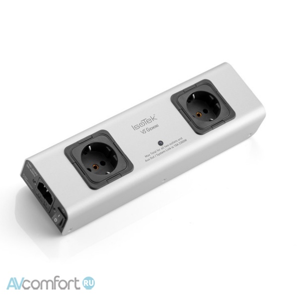 V5 Gemini также содержит розетку System Link, которая предназначена для соединения нескольких устройств вместе, сохраняя при этом заземление по схеме «звезда» и сохраняя необходимость в нескольких настенных розетках.