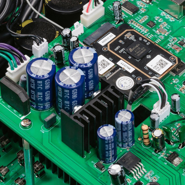 Возможных источников входного сигнала – двенадцать! Вход HDMI ARC расширяет возможности усилителя, позволяя воспроизводить звуковую дорожку с любого современного телевизора. Имеются и четыре аналоговых выхода – один для записи, два регулируемых для внешнего усиления (балансный и небалансный) и один моно (для активного сабвуфера). Цифровой сигнал обрабатывает хорошо известный ЦАП на чипе Sabre ES9018K2M. К усилителю можно подключить дополнительный ЦАП – у T3S имеется оптический цифровой выход. Подключиться к Wi-Fi и настроить сетевой проигрыватель позволяет удобное и понятное мобильное приложение Audio System.