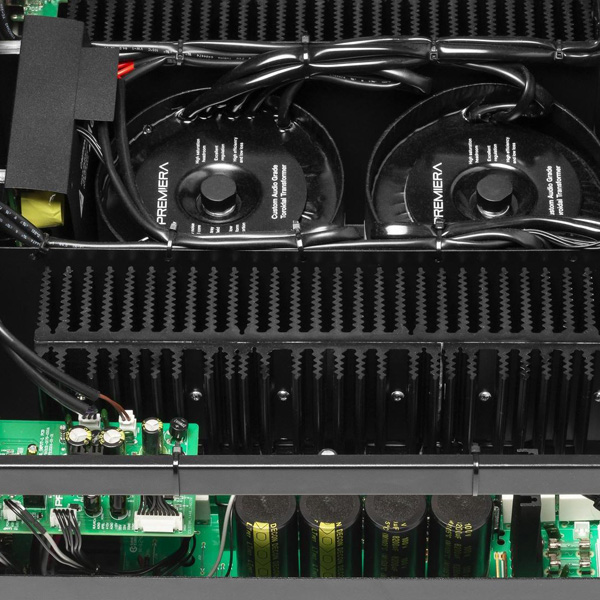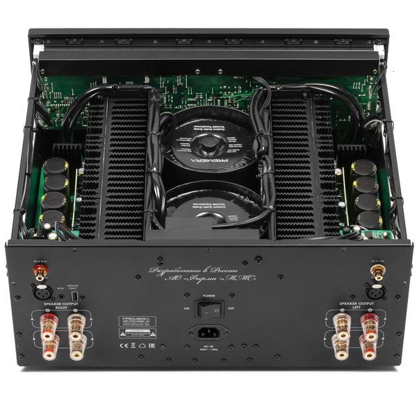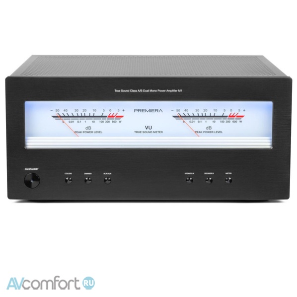 Premiera M1 – разработанный в России высококачественный Hi-Fi стереоусилитель мощности класса AB, построенный по схемотехнике «двойное моно», с выходной мощностью 260 Вт на канал при нагрузке 8 Ом, предназначен для использования в профессиональных и домашних аудиосистемах в качестве оконечного усилителя.