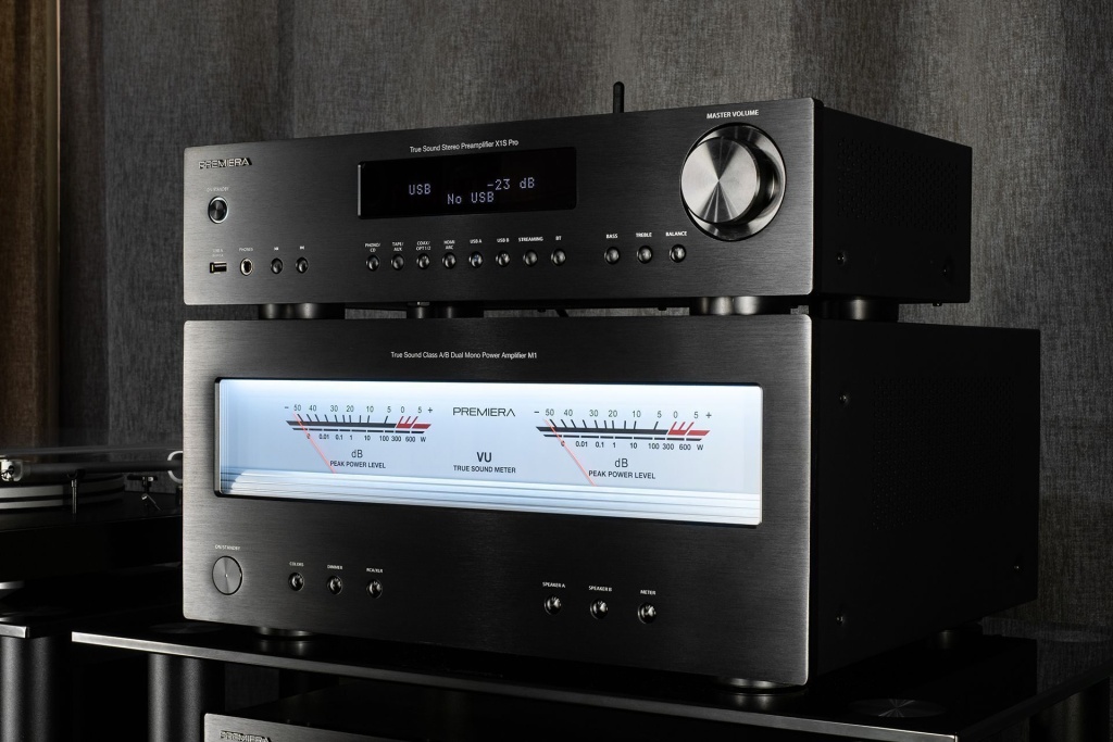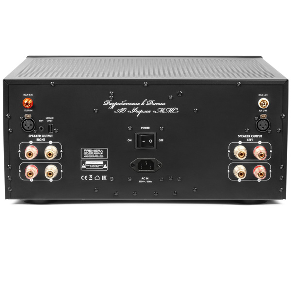 Premiera M1 - современный Hi-Fi стереоусилитель мощности класса AB с номинальной выходной мощностью 260 Вт на канал, с балансными и небалансными линейными входами.